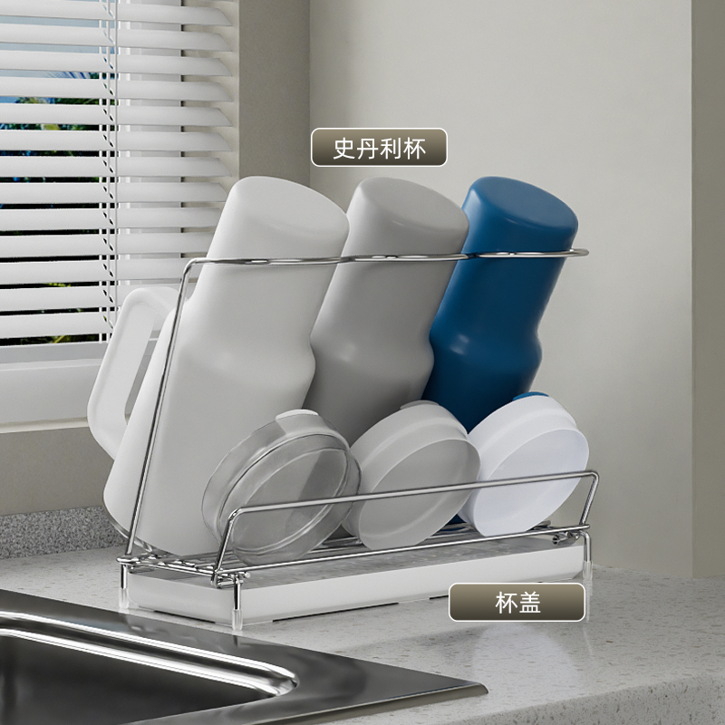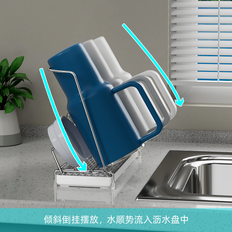 倒掛擺放水杯,水流入瀝水盤,方便處理