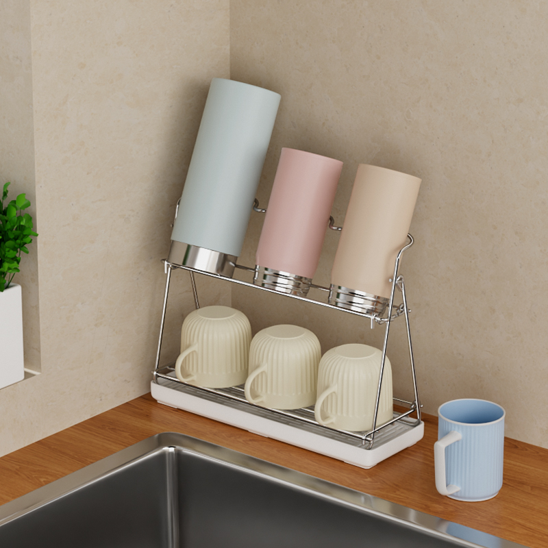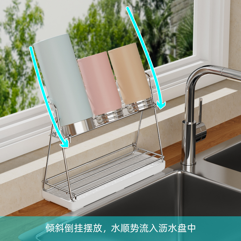 倒掛擺放水杯,水流入瀝水盤,方便處理