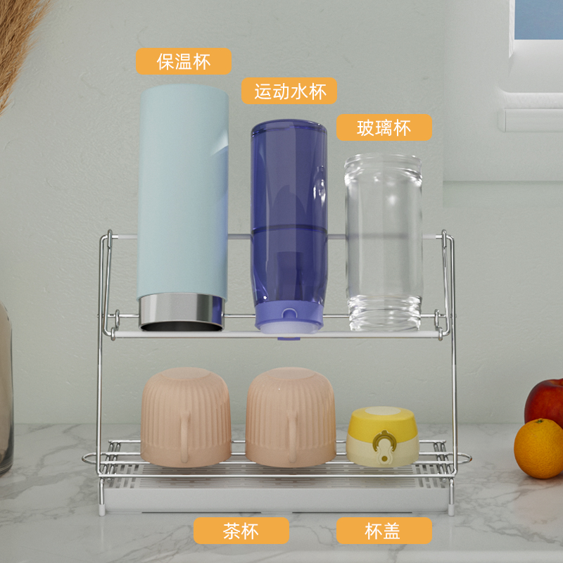 倒掛擺放水杯,水流入瀝水盤,方便處理